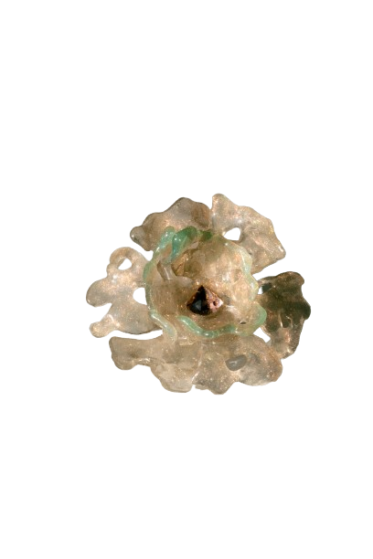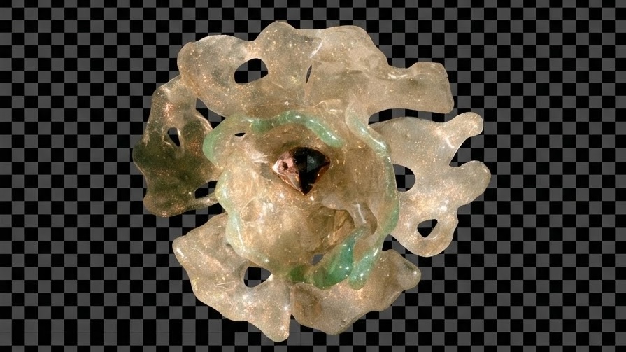 Escultura de gel color traslúcido con pequeñas mini esculturas que se unen a la misma pieza